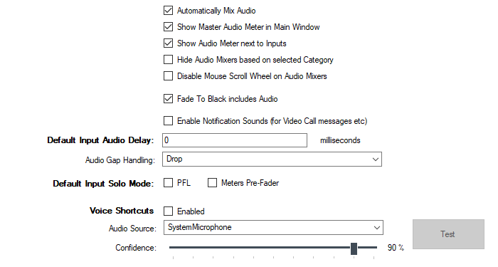 Set an audio delay value in milliseconds to apply to all inputs added to vMix by default.