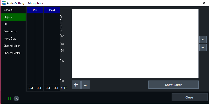 The Audio Plugins feature allows adding 3rd party audio plugins to inputs and outputs in vMix.